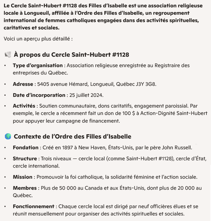 Un grand merci à Cercle Saint-Hubert #1128 des Filles d’Isabelle pour leur donation de 100$ en soutien à la campagne de financement 2025 d’Action-Dignité Saint-Hubert.